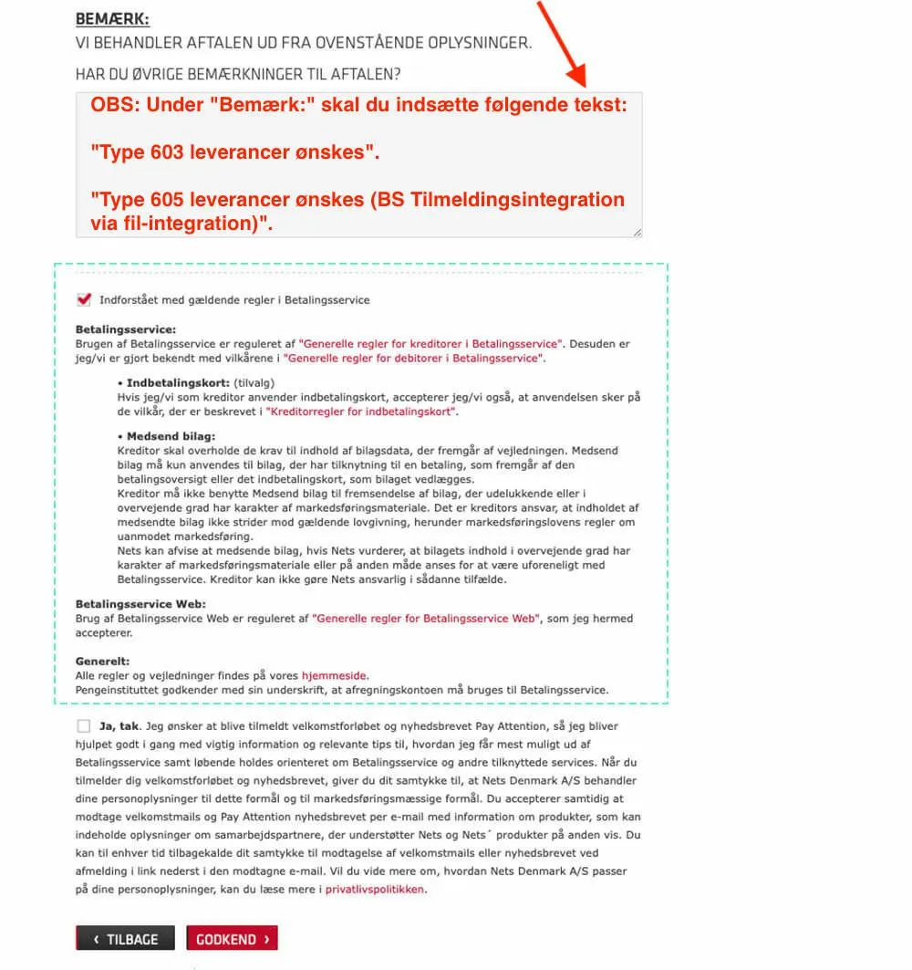 OBS: Under "Bemærk:" skal du indsætte følgende tekst: