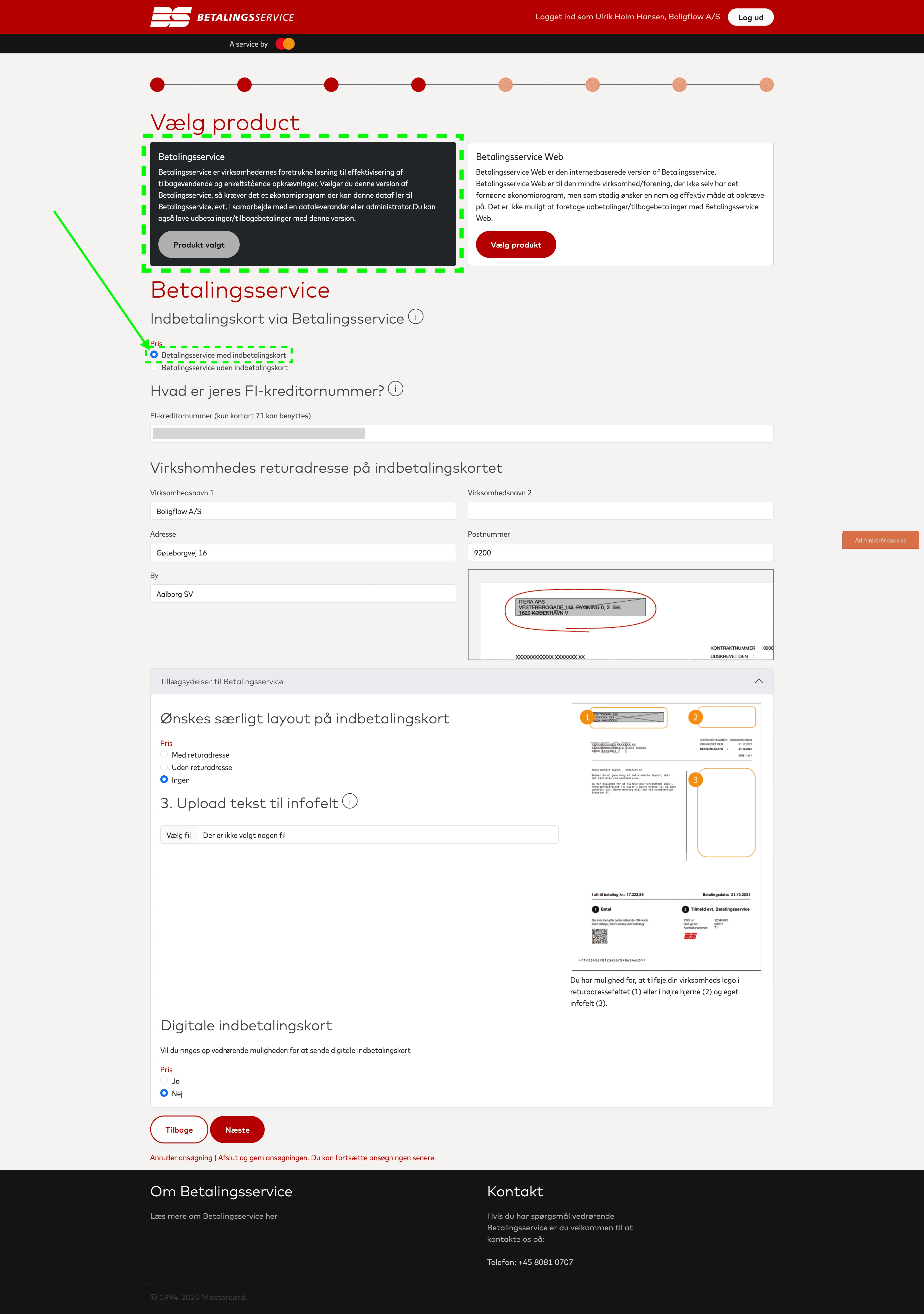 Ved virksomhedens returadresse på indbetalingskortet indtaster du dine virksomhedsoplysninger.